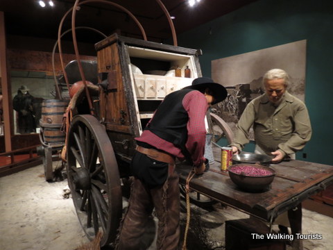 After a long trip on the trail or in the mountains hunting, western men would unwind with some drink and some female “companionship.” The museum offers a look at a saloon.