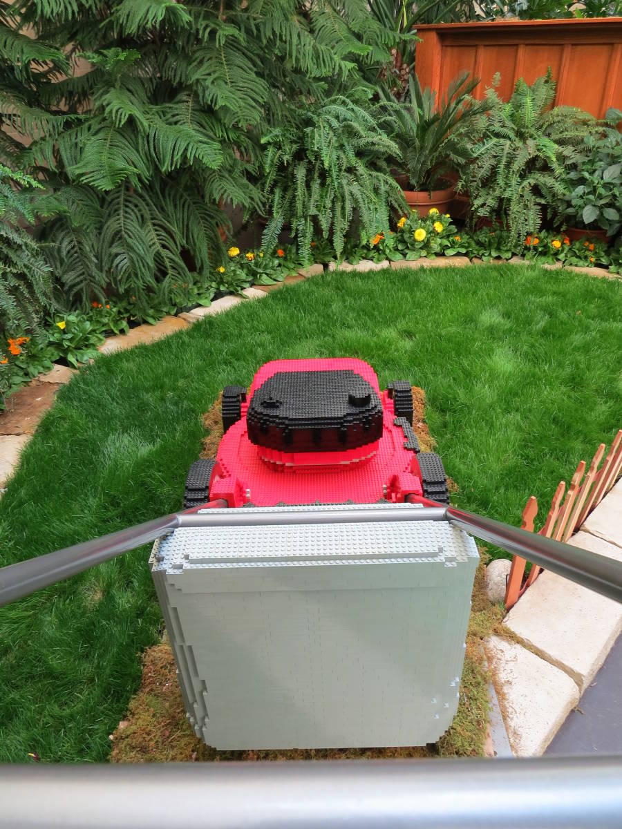 View of the Lego lawnmower from the pushing position