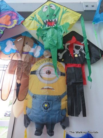 Pop culture makes its way to kite flying. Would we have it any other way? Dogs, dinosaurs, pirates, etc., can be flown as kites. My favorite may have the Minion kite that was hanging on the wall.