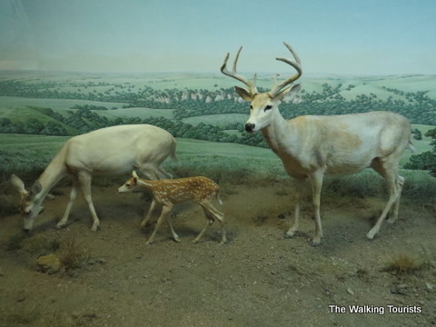 Exhibits highlighted include Midwestern animals such as deer, foxes, bison and Sandhill cranes.