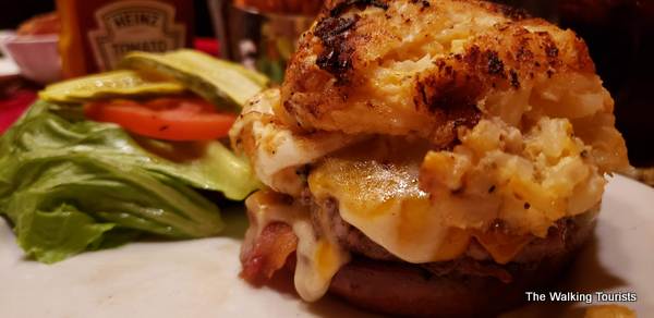 Dinner at Appanoose Rapids featured a special menu. I chose the Rapids Burger, an eight-ounce burger topped with bacon, cheddar cheese, fried egg, hash browns, pickles, lettuce and tomato. Sitting on a pretzel bun, the entree was so tall I needed to use a fork and knife to enjoy it.