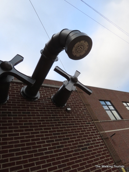 Canteen Alley is considered a “green” space, using art pieces to help recycle rain water. The alley’s brickway is permeable, allowing water to easily soak through the surface. Unique art pieces allow water to drain from buildings into the ground.