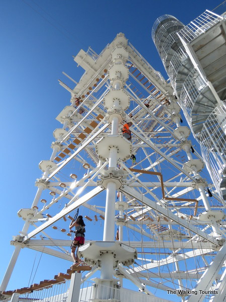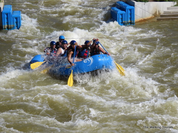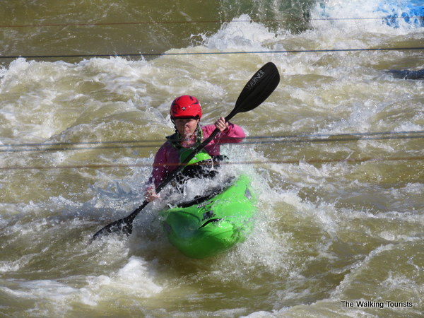 The most challenging aspect of the adventure park may be the manmade whitewater channels. On our first visit, the waterways were calm. Our second trip there, holy moly! The whitewater machine was turned on and the rapids looked vicious. Two channels allow people to navigate kayaks and rafts down a calmer route or take the more challenging one. Most people we watched took on the professional-level channel. Watching kayakers disappear under the rapids was slightly worrisome, but a split second later you see either their head popping out above the water or the bottom of the kayak flipped over with the athlete soon behind.