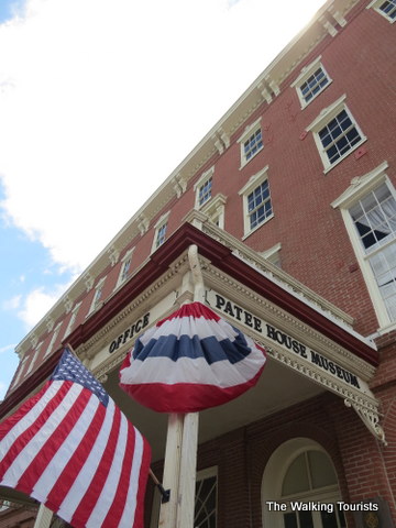 It starts outside with a view of the entrance – “Patee House Hotel” and “Pony Express Office” signage above the overhang. Just off to the side are markers recognizing the significance of the Pony Express.