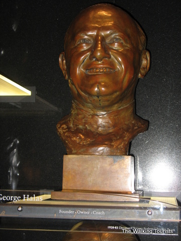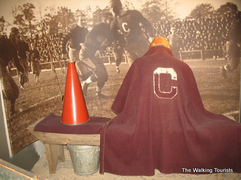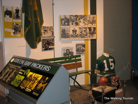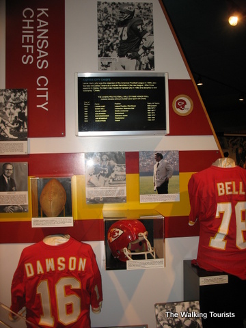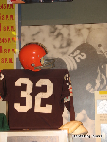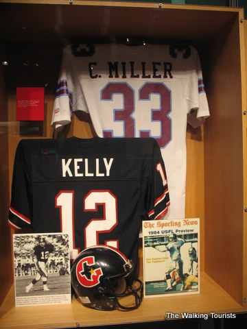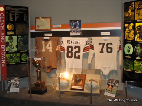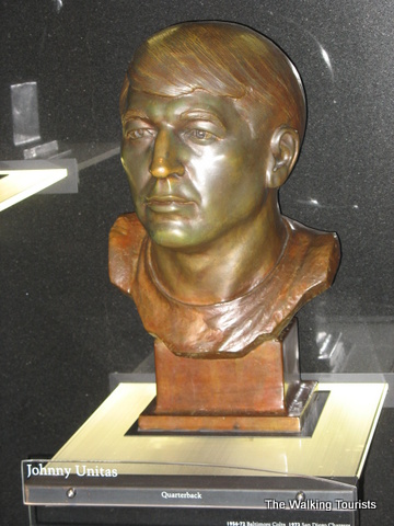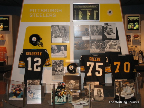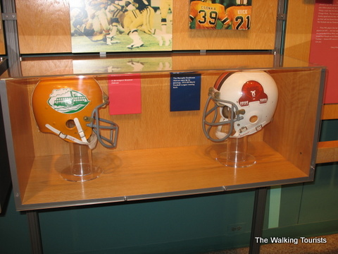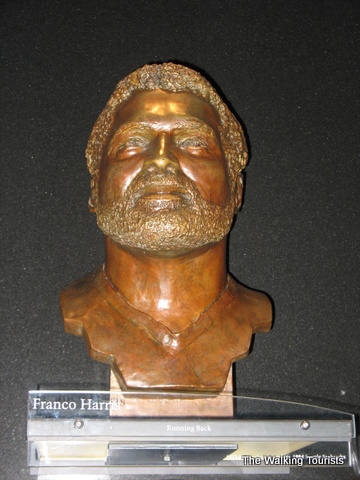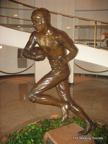 The Hall of Fame contains photos, uniforms, and footballs…all kinds of memorabilia of football history. Artifacts from record-breaking games or plays are in the Hall. Each team is represented with a display highlighting key or great players form its history.