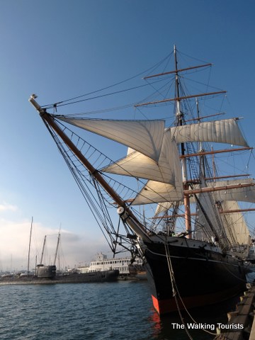 It sits as the anchor to the Maritime Museum of San Diego. Nearby are additional boats and submarines for people to explore.