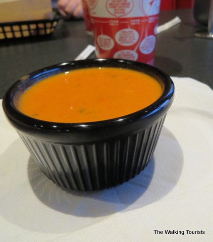 The soups are basic – basic tomato, creamy tomato, chunky tomato, bleu cheese chili and a soup of the day.