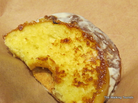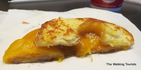 They have nine options of grilled donuts. Mallory loved the grilled cheese donut. It was ooey gooey goodness of cheddar cheese on a glazed donut. The donut is grilled with the glaze in the middle. It creates a sweet taste with the cheddar cheese. I enjoyed my donut, as well. I can’t argue her choice for overall favorite sandwich.