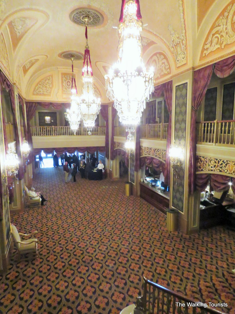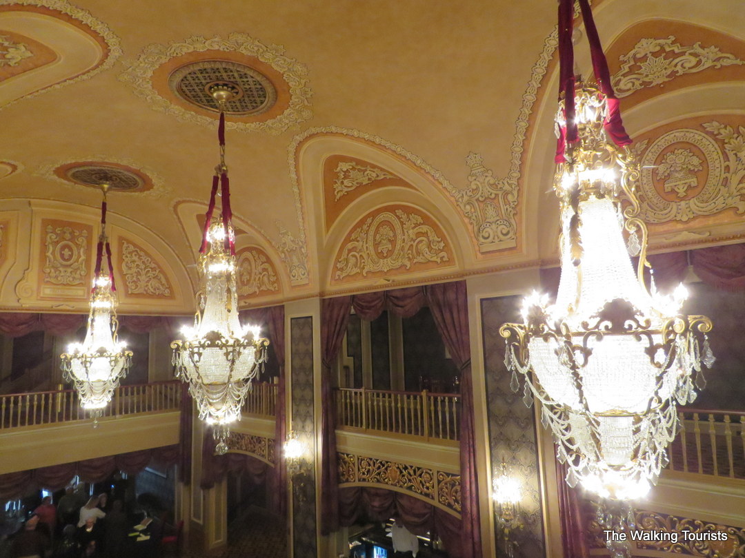 In the late ‘80s, a non-profit organization was formed to help raise money for the renovation of the Orpheum. Work actually started in 1999. During the renovation, once experts started removing the false ceilings and other items in the building, something amazing was discovered. The chandeliers in the main lobby had survived through the decades. They were meticulously cleaned and fixed. Now, three of the original chandeliers hang from the ceiling. They’re beautiful attractions for the Orpheum. During our visit, they were the focus of photographers and visitors, alike.
