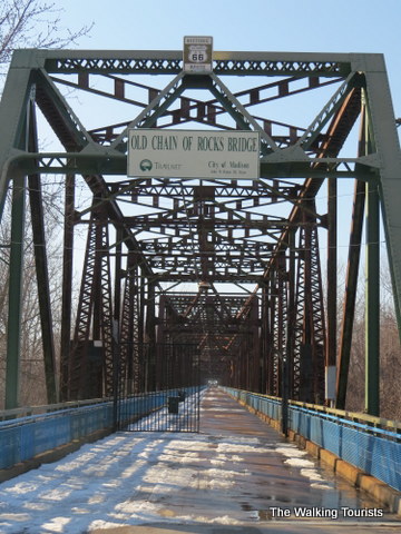 Our first Route 66 site was the Old Chain of Rocks Bridge on the Illinois side. The bridge is now a pedestrian walking bridge across the Mississippi River. We took a short stroll, taking in the river and its views.