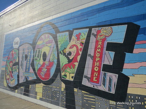 Murals depicting The Grove’s history are located throughout the street.