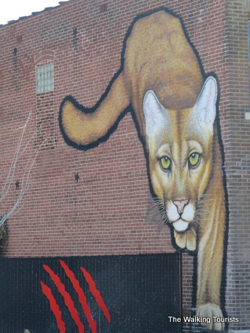 Lisa loved a mural of a big cat on the wall of a building.