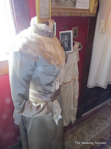 The center has a collection of wedding gowns from years past. The gowns range from basic white to more decorative and colorful. A colored gown with a cameo pendent was worn by Anna Anderson for her wedding to Carl Hultquist in 1894. The gown looks like it could be worn today.