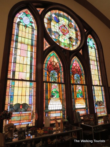 The center is located in a former church building. Stained glass windows provide an attractive background.