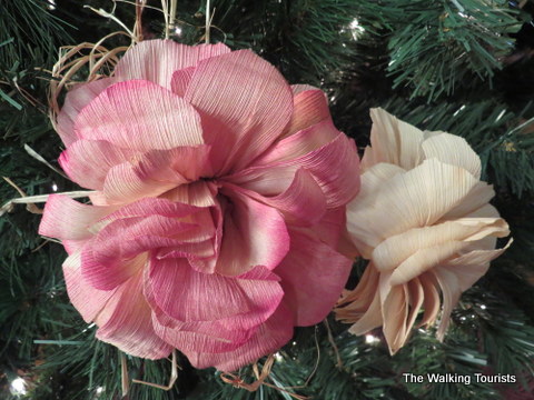 Corn husk ornaments adorned a holiday tree. The husks are handmade by Tom Wallerstedt. Tom, an Oakland native, moved back home after years away. He is the de facto caretaker of the heritage center.