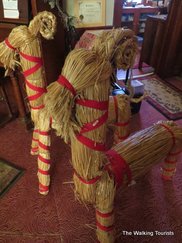 Dalas are Swedish decorative horses. They originated from the central Swedish province of Dalarna. Vikings considered them holy animals. They are usually painted with bright colors. The center had a couple of straw-made Dalas on display.