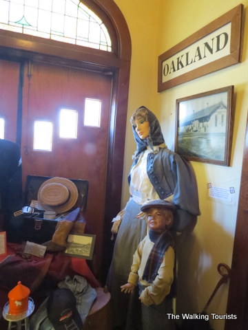 Oakland once had a nice train depot. Many people arrived in town via the train. While the depot no longer exists, the heritage center remembers it with a display of a woman and her family possibly arriving to their new home.