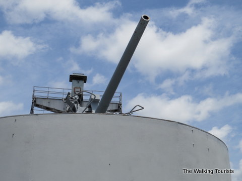 The SS American Victory has two gun ports still in position. One is at the front, and the other at the rear (lacking naval terms, I know). We checked out both. They were different sizes of guns.