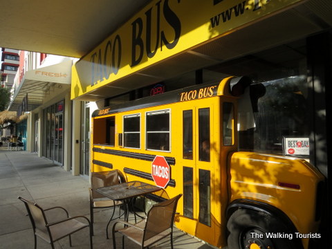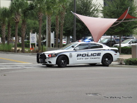 Our GPS – nicknamed Gerty (she is a sweetheart) – had us almost to our destination at the Taco Bus for lunch. However, this is where our “brush” with fame occurs. The Tampa police department had the street we needed to turn on blocked off. Ugh! OK, we’ll try the next street. Same thing. We ended up driving about 3-4 blocks out-of-the-way to find a place to park. As soon as I saw an empty spot, I took it.