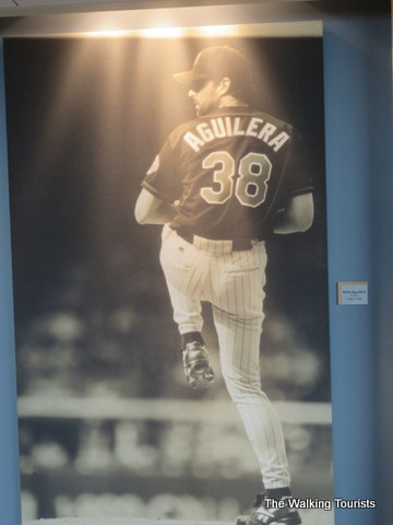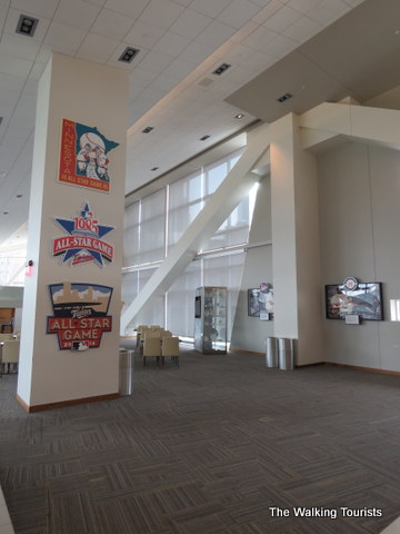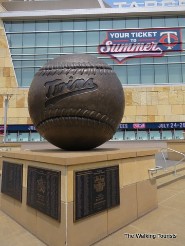 A giant baseball honors the 2014 All-Star game that was played at target Field. The rosters for the National and American League teams are encased, as well.