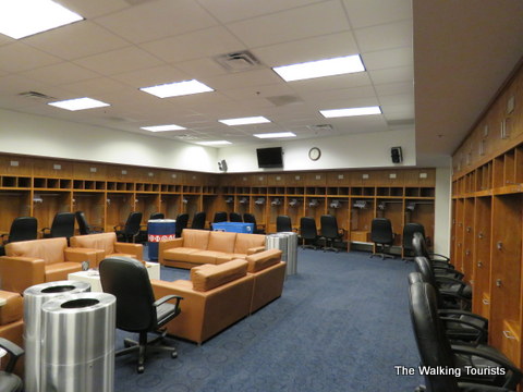 We made our way to the visitors’ clubhouse. It was empty since the Twins’ opponent wouldn’t arrive until that night.