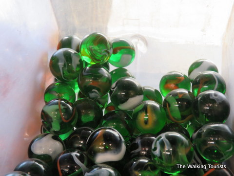 We didn’t leave empty handed. Lisa picked up some smooth stones, similar to worry rocks. I grabbed some of the larger marbles. Unfortunately, I ran into a challenger, who also liked the larger marbles.
