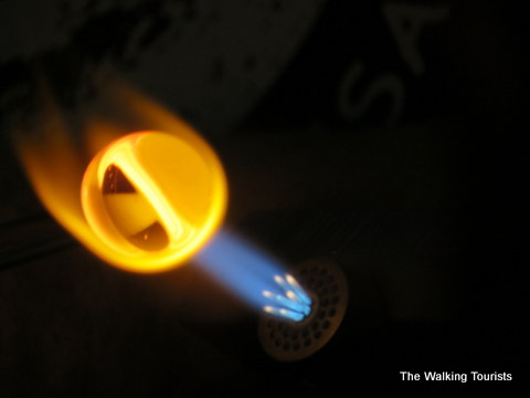 We took in a presentation during our visit. Bruce is quite the entertainer. He gets the room energized while he heats the glass and creates a piece of art. The room was packed. A small bench area was full, and people sat in chairs to the side of it.