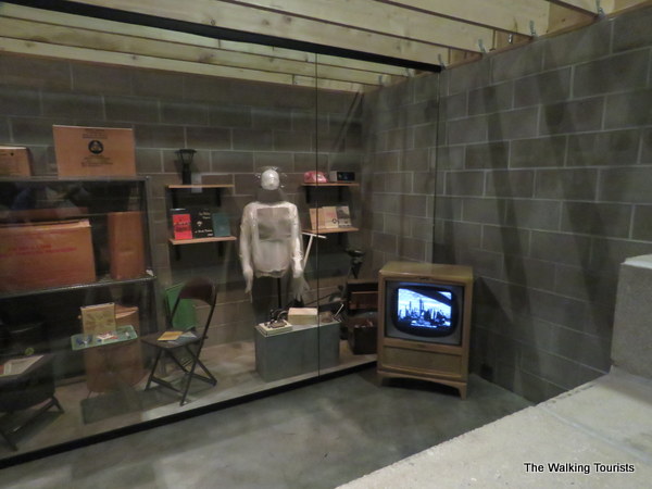 The exhibit features a nuclear fallout shelter. It resembles a basement that could be found in any home. A young child asked me about the old television set in the corner. It was running video of programs. I explained to the 10-year-old that TVs once looked like that. He wondered how old it was. I told him it was probably from the 1950s or early ‘60s. We figured it may be older than his grandmother. He was impressed that it still worked.