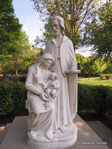 The Virgin Mary statue stands at the east end of the garden, while her son, Jesus, stands at the west side.