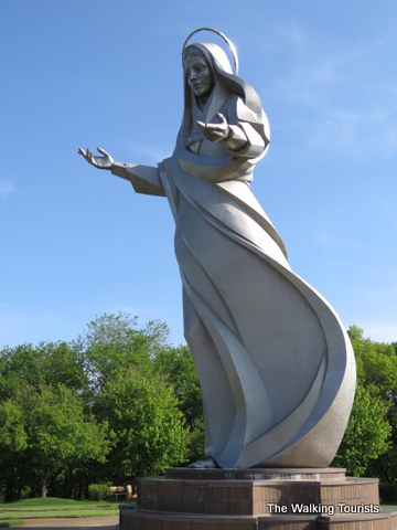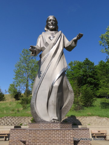 At either end of the garden walk stands the Virgin Mary and her son, Jesus Christ. Mary’s statue stands 30 feet tall and shines in the sun with her stainless steel appearance. Jesus is located on the western edge of the park. His statue stands 33 feet tall. In-between, people can visit a multitude of gardens, each based on a religious theme.