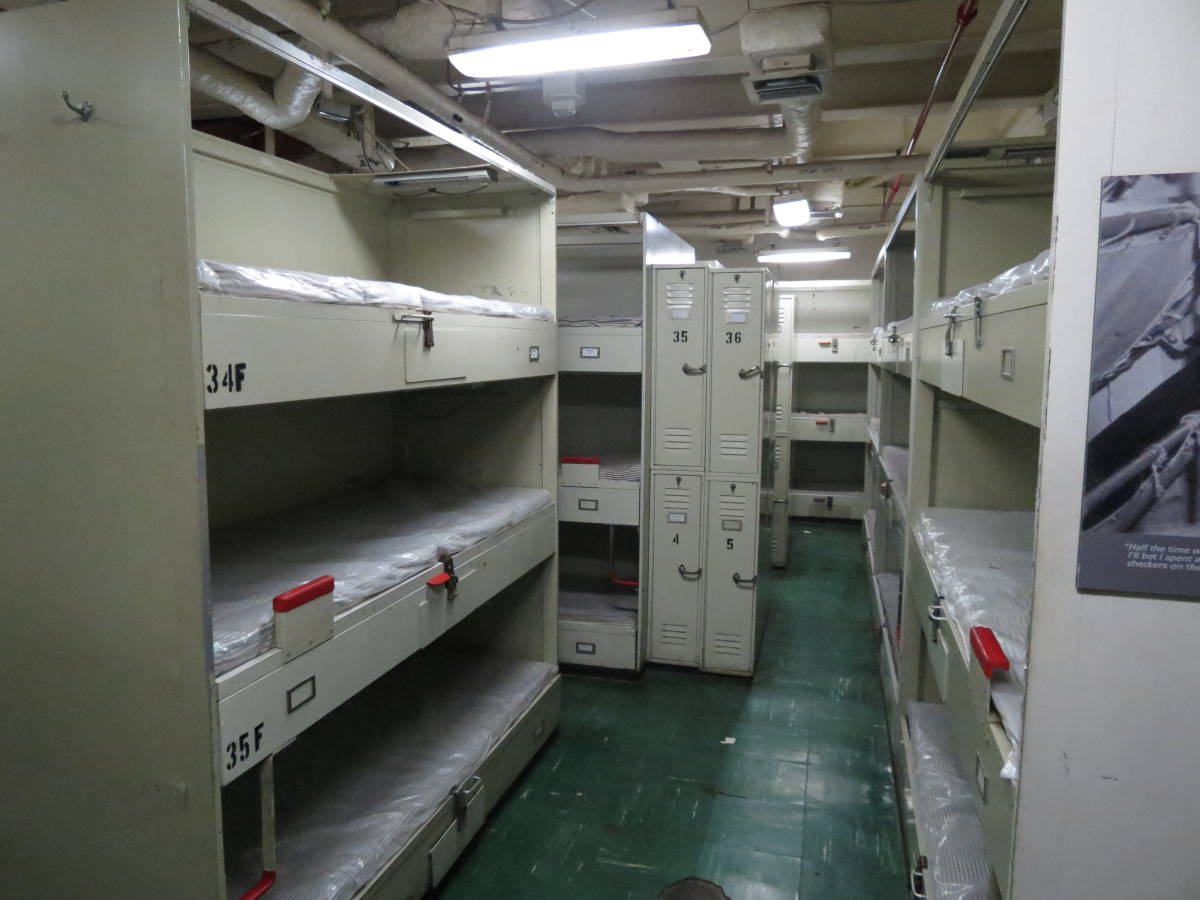 The enlisted quarters were a major step down. The junior enlisted seamen shared sleeping quarters. Small bunk beds lined interior rooms. There appeared to be no privacy for the enlisted in the living area.
