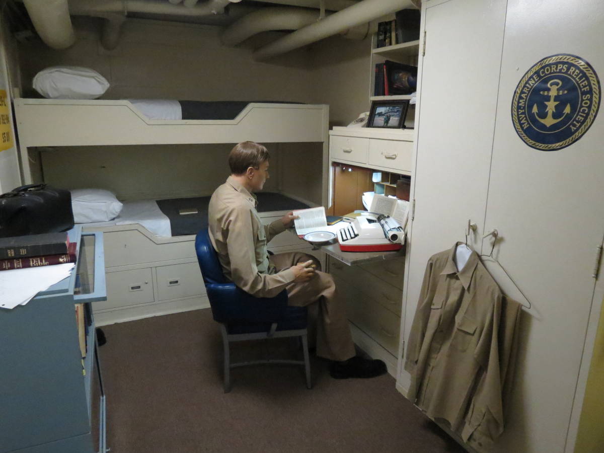 The Captain’s quarters were an interesting area. You would think the top officer on the ship would have the best area, but it was not much better than the other officers’ area.