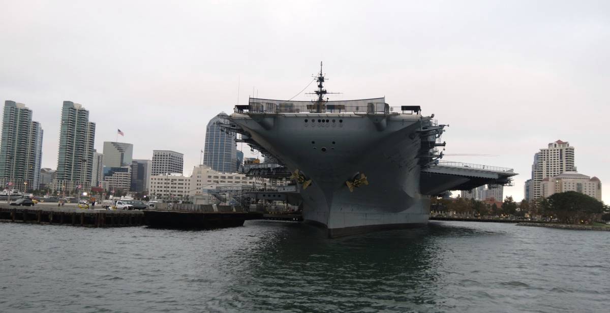 The Midway is docked in the San Diego harbor, along the Harbor Walk. It is perhaps the best attraction in that area.