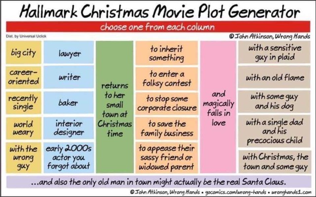 The joke about Hallmark movies is the company uses one or two writers to create three scripts in order to make 600 movies. That may not be too far off.