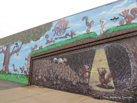 The building is an invitation for a sweet adventure. As you approach it, a mural featuring squirrels and their nuts covers the entire side of the building. You know you’re in for a treat.